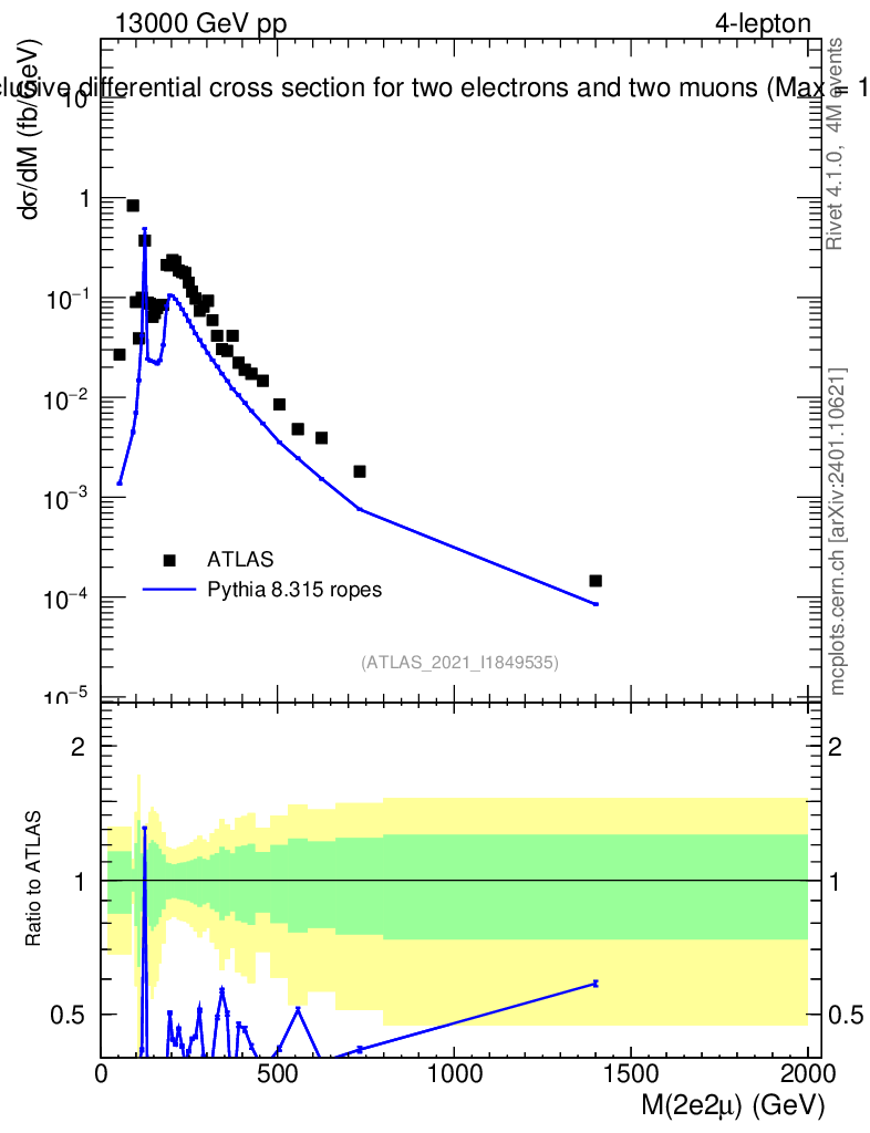 Lines: data, pythia8 8.315 ropes |