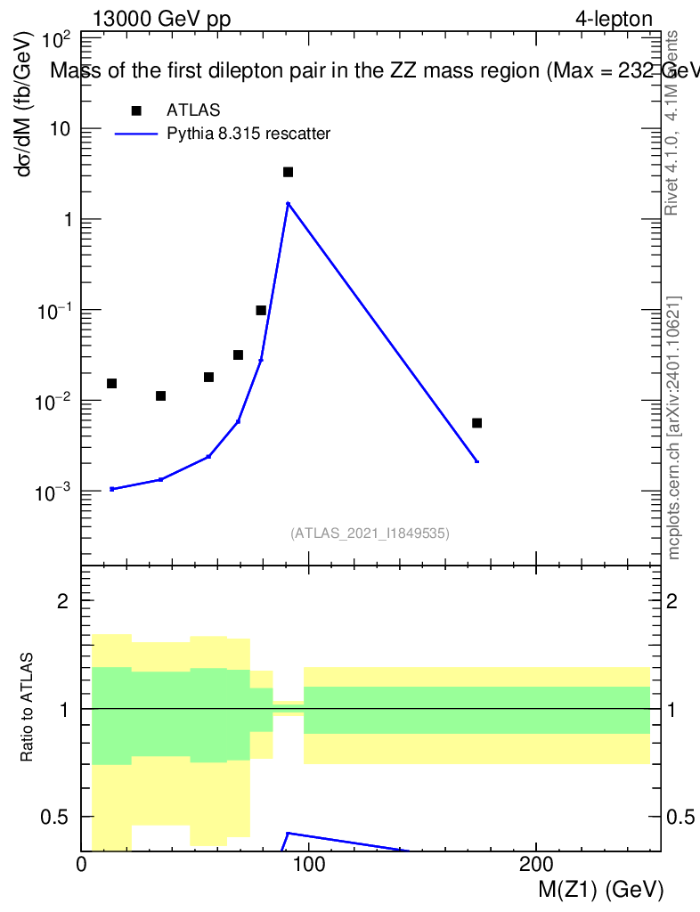 Lines: data, pythia8 8.315 rescatter |