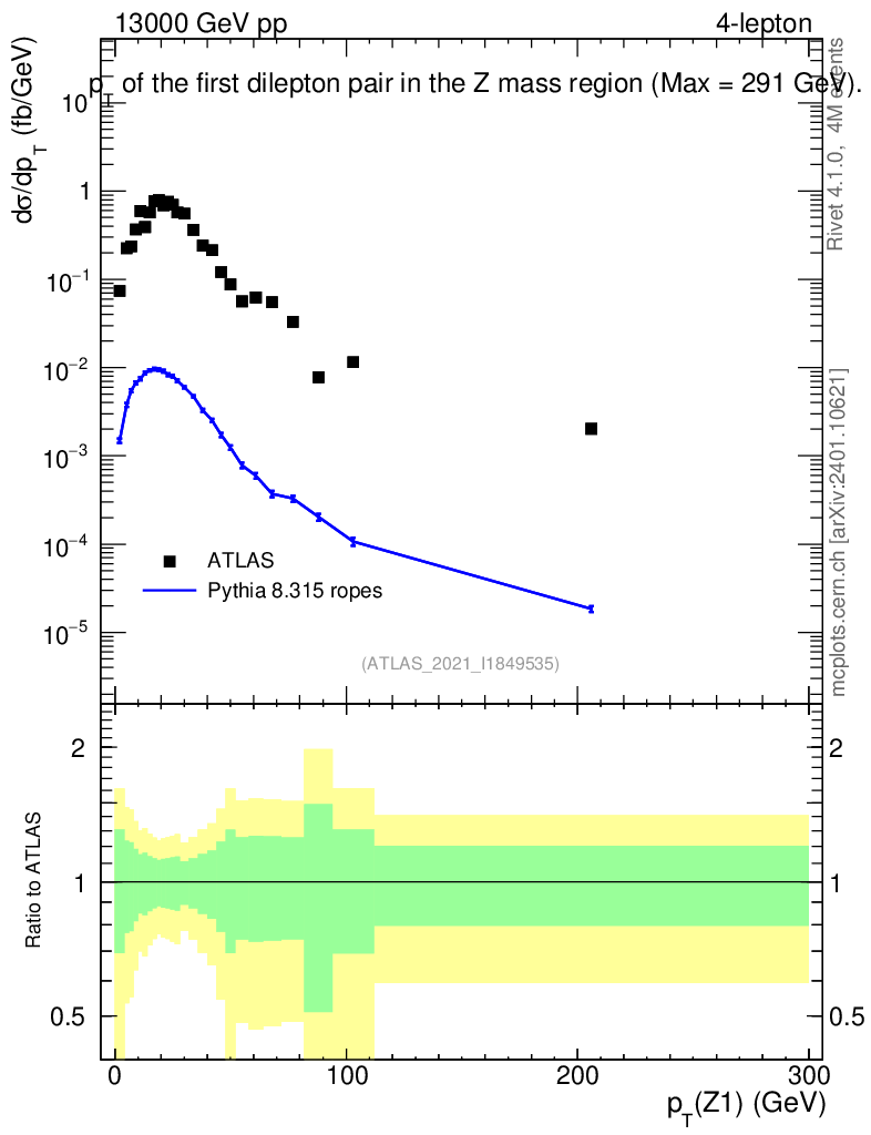 Lines: data, pythia8 8.315 ropes |