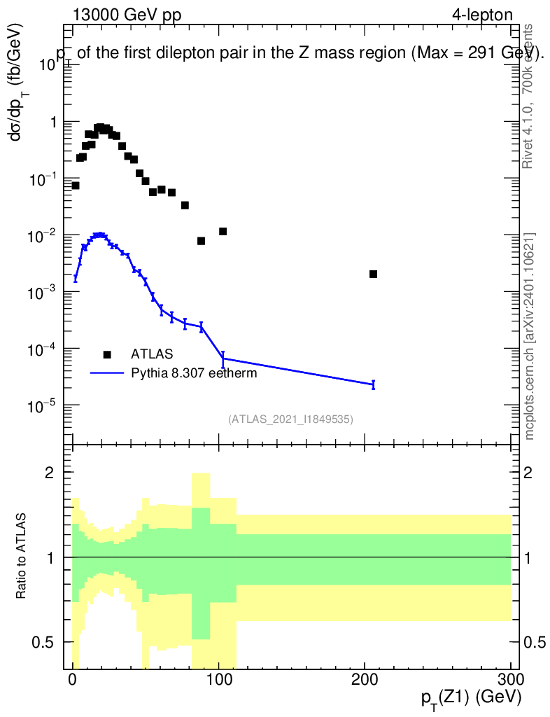 Lines: data, pythia8 8.307 eetherm |