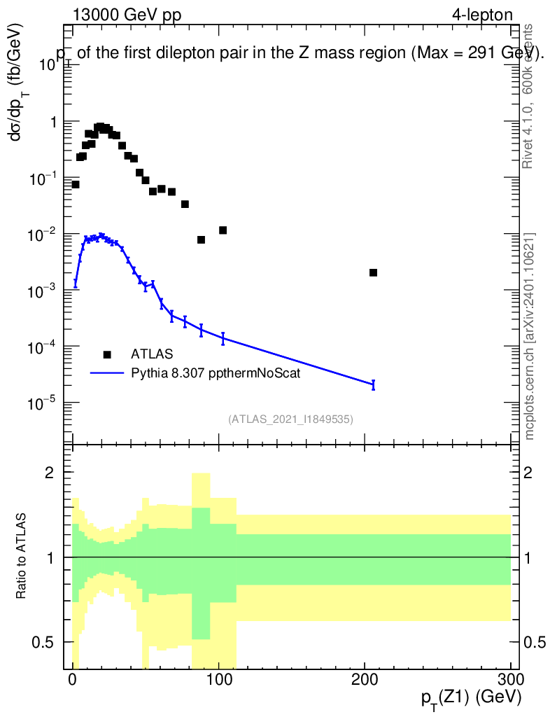 Lines: data, pythia8 8.307 ppthermNoScat |