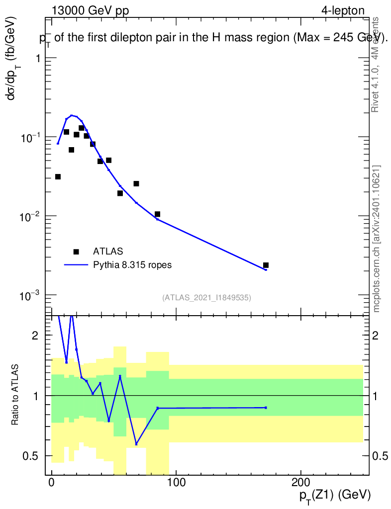 Lines: data, pythia8 8.315 ropes |