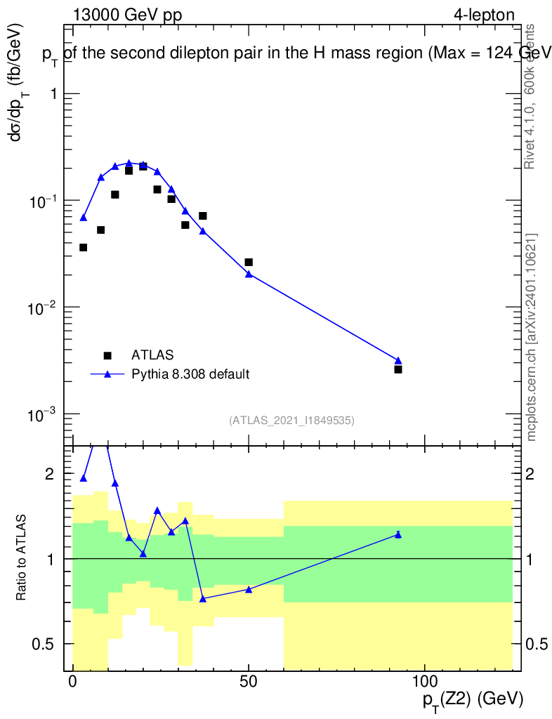 Lines: data, pythia8 8.308 default |
