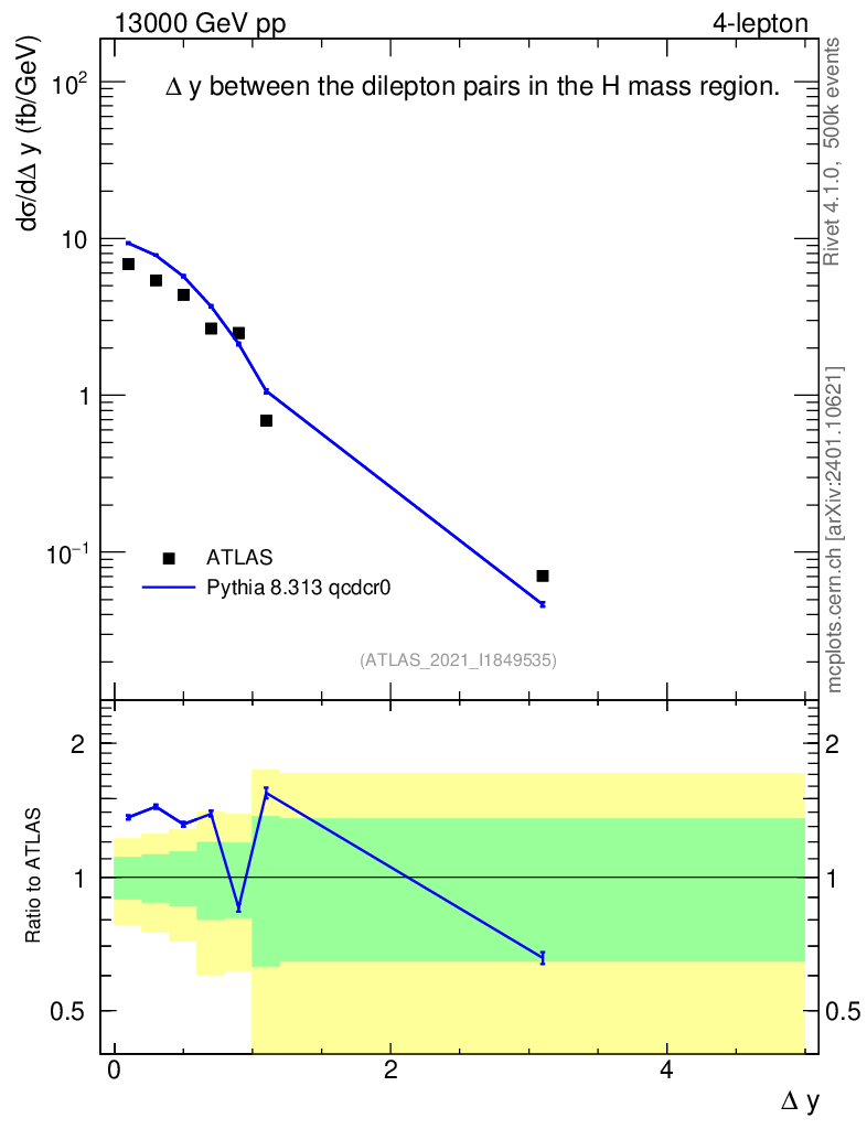 Lines: data, pythia8 8.313 qcdcr0 |