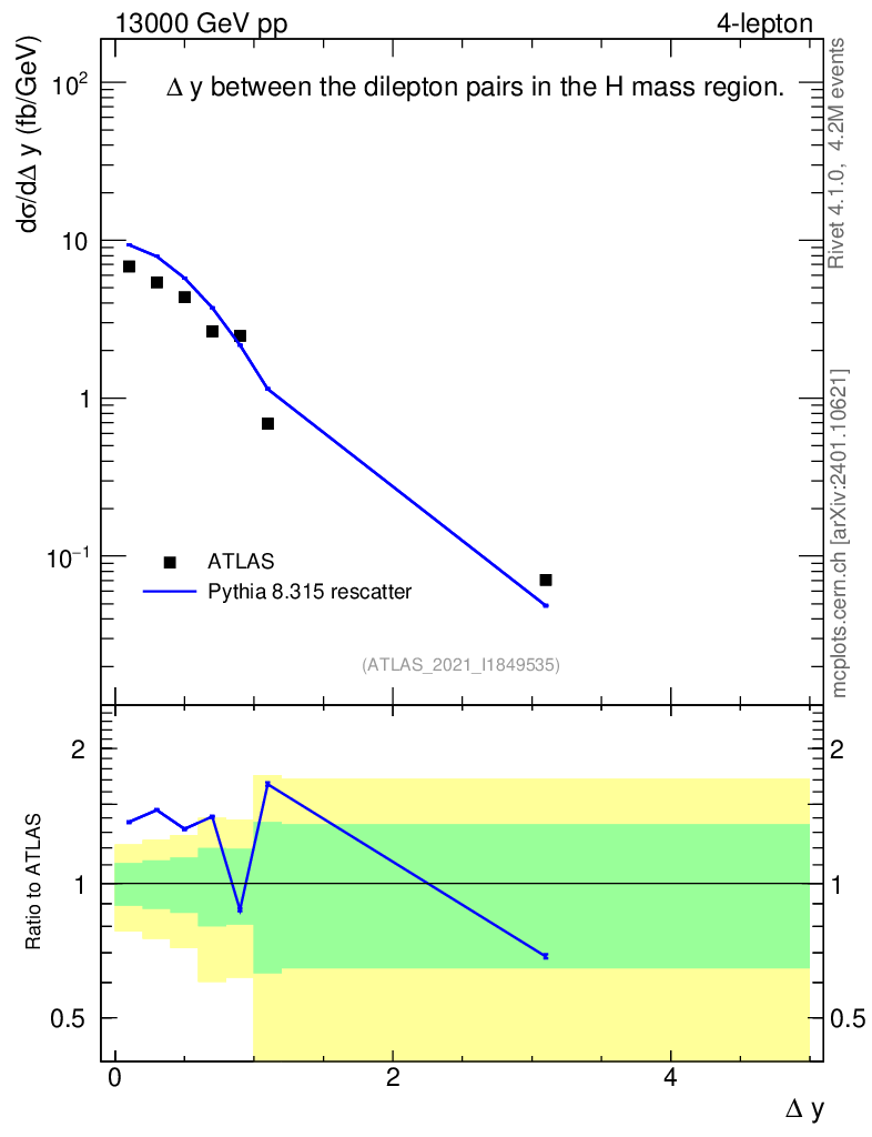 Lines: data, pythia8 8.315 rescatter |