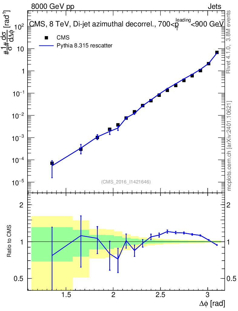 Lines: data, pythia8 8.315 rescatter |