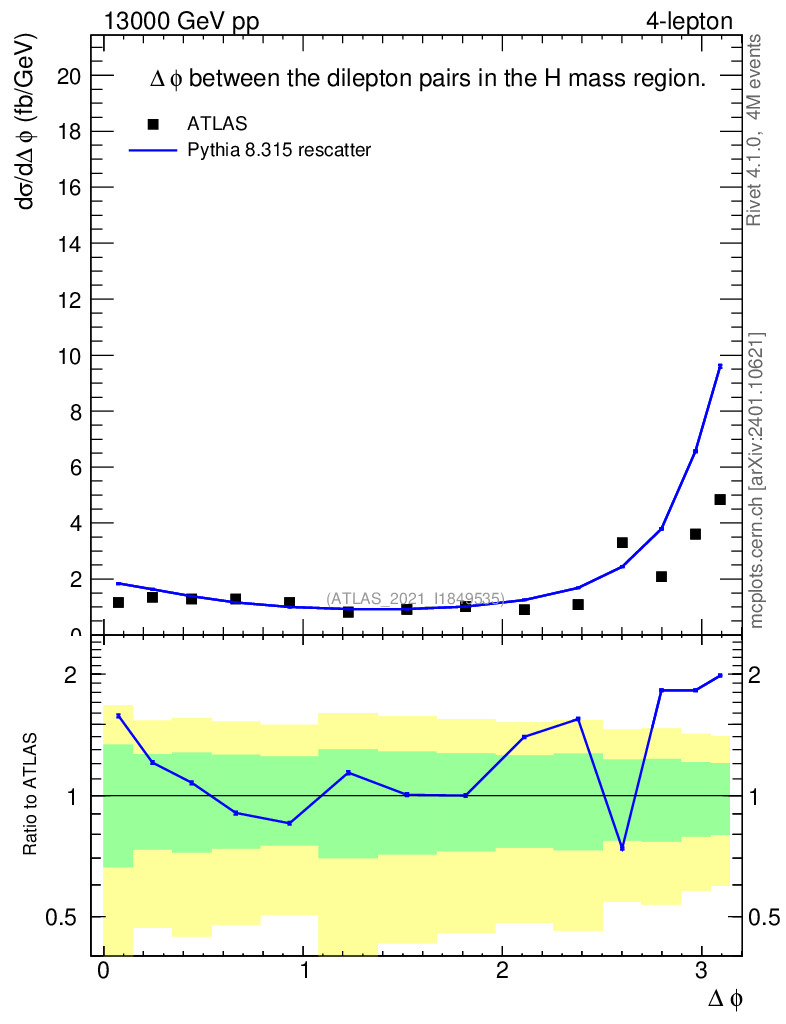 Lines: data, pythia8 8.315 rescatter |