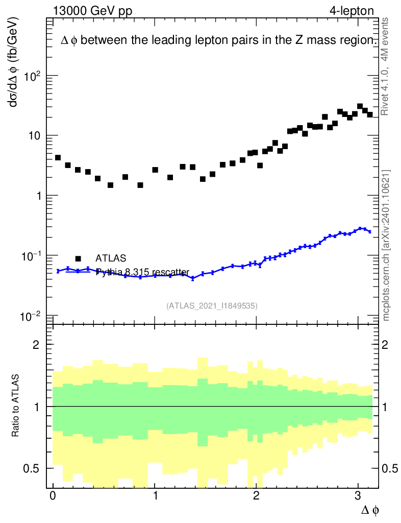 Lines: data, pythia8 8.315 rescatter |