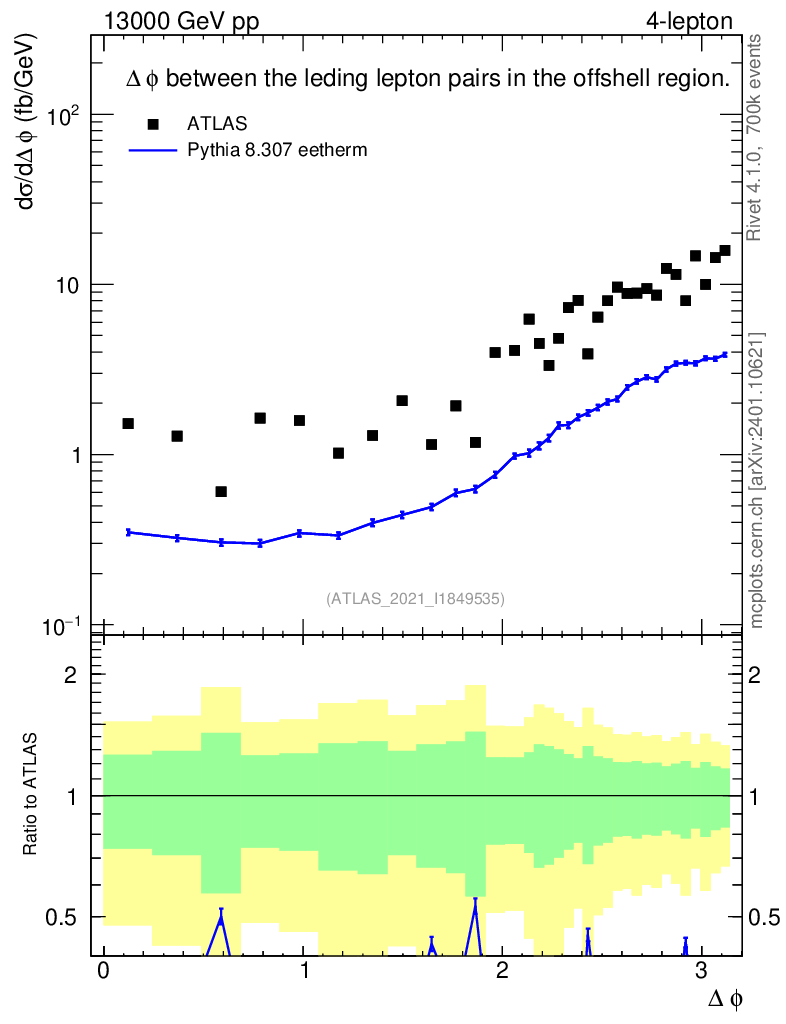 Lines: data, pythia8 8.307 eetherm |
