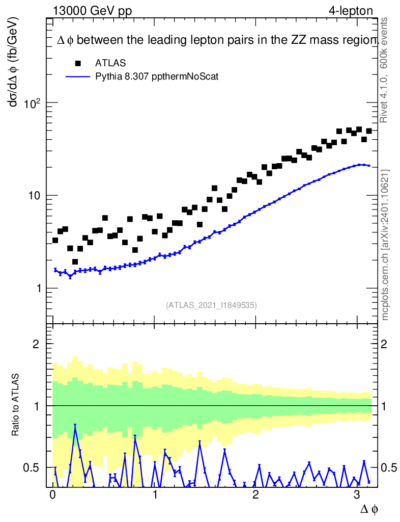 Lines: data, pythia8 8.307 ppthermNoScat |