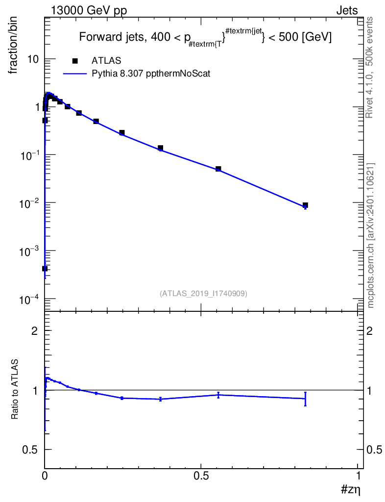 Lines: data, pythia8 8.307 ppthermNoScat |