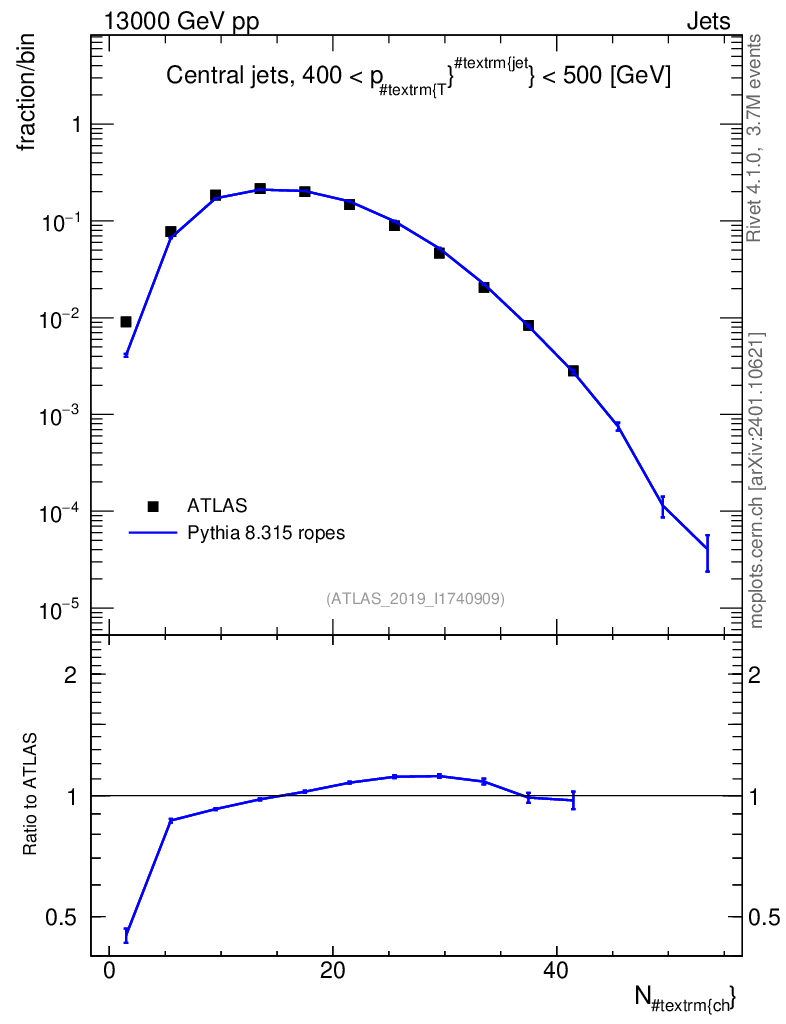 Lines: data, pythia8 8.315 ropes |