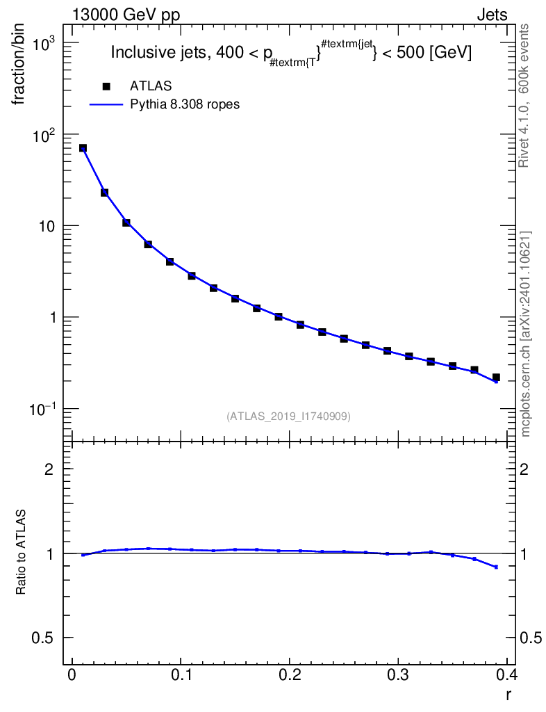 Lines: data, pythia8 8.308 ropes |