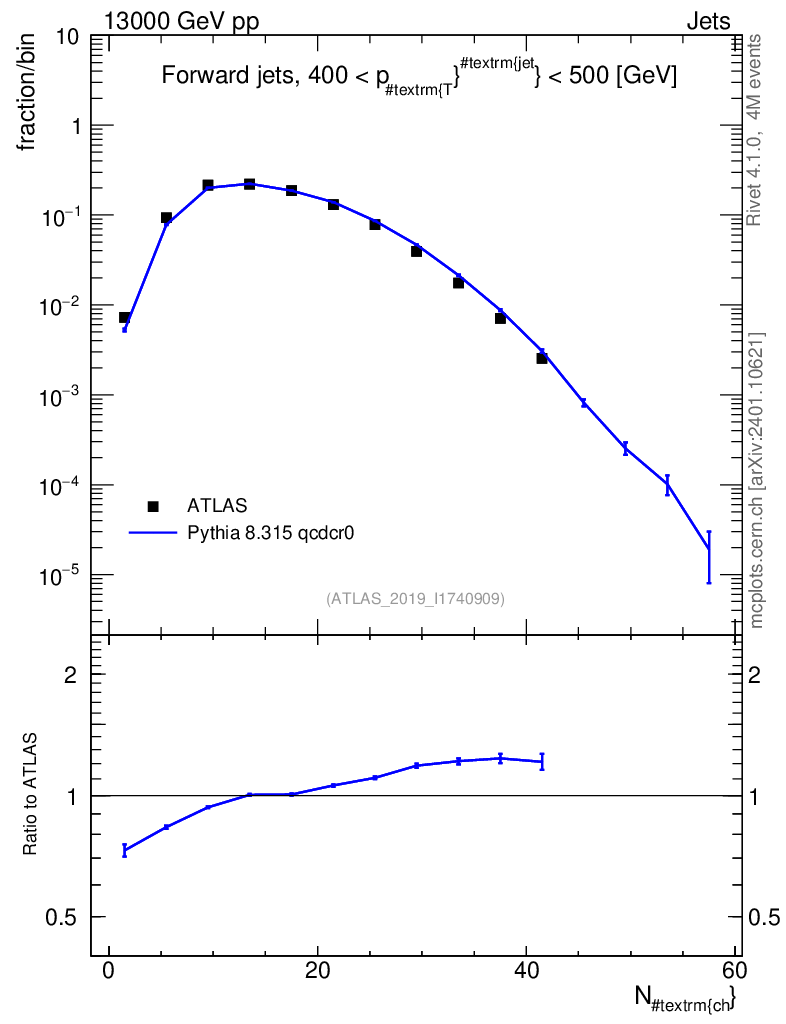 Lines: data, pythia8 8.315 qcdcr0 |