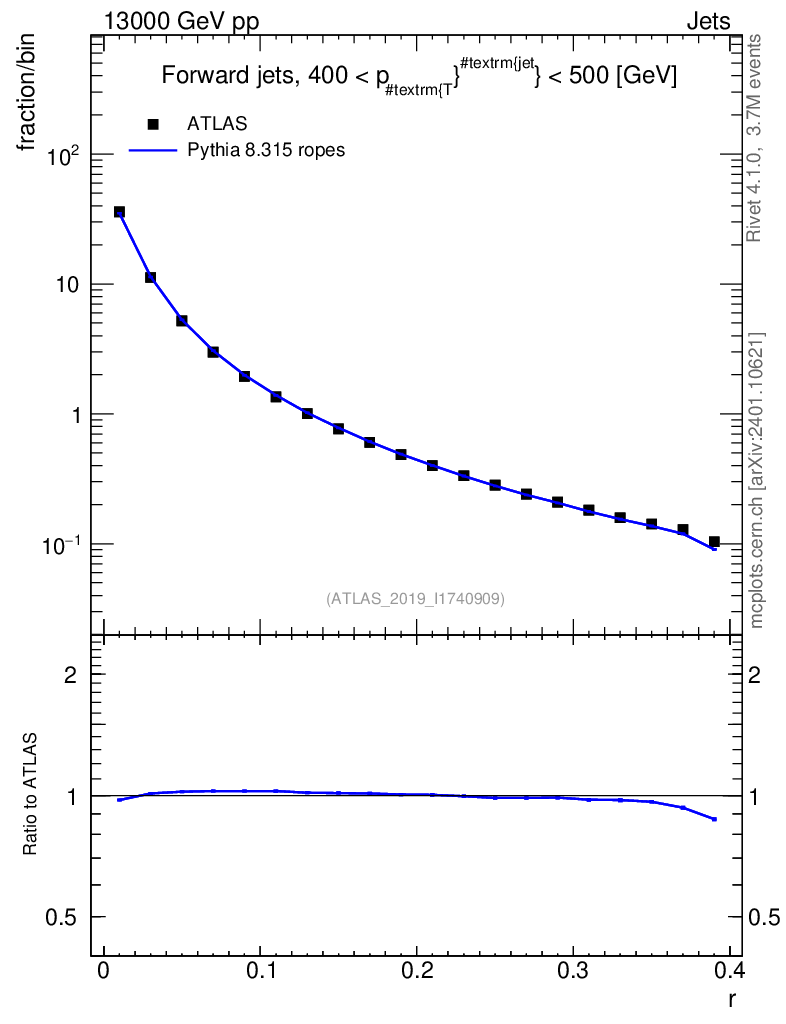 Lines: data, pythia8 8.315 ropes |