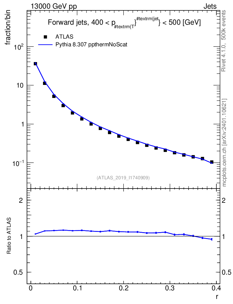 Lines: data, pythia8 8.307 ppthermNoScat |