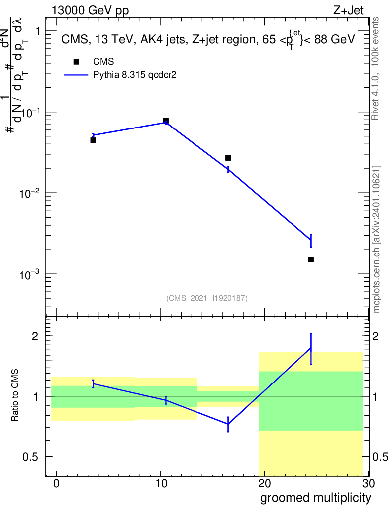 Lines: data, pythia8 8.315 qcdcr2 |