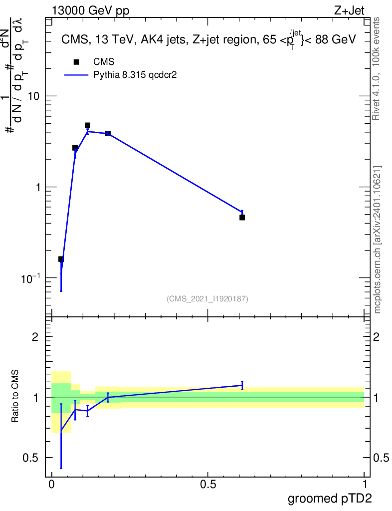 Lines: data, pythia8 8.315 qcdcr2 |