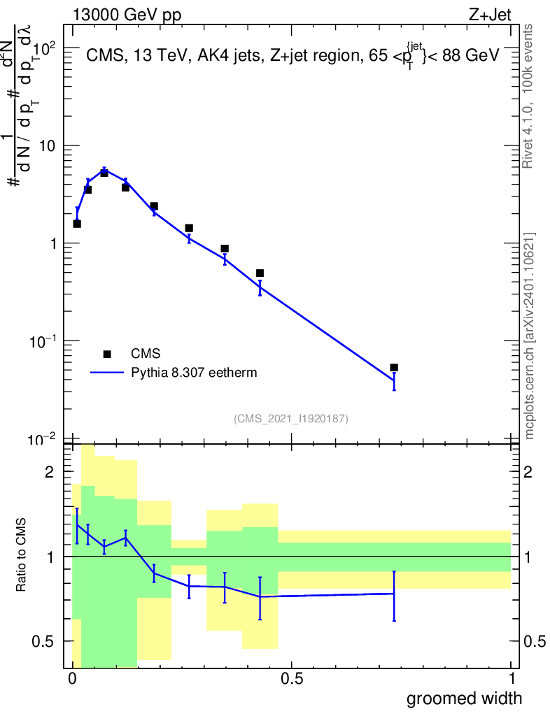 Lines: data, pythia8 8.307 eetherm |