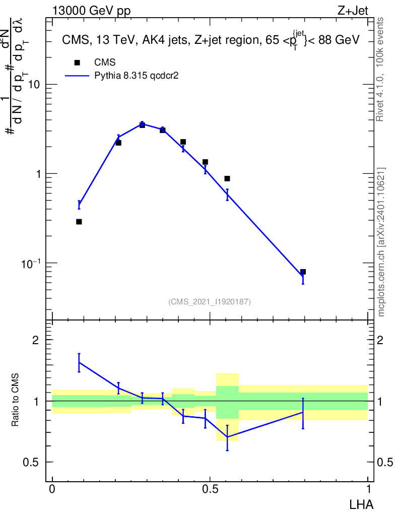 Lines: data, pythia8 8.315 qcdcr2 |