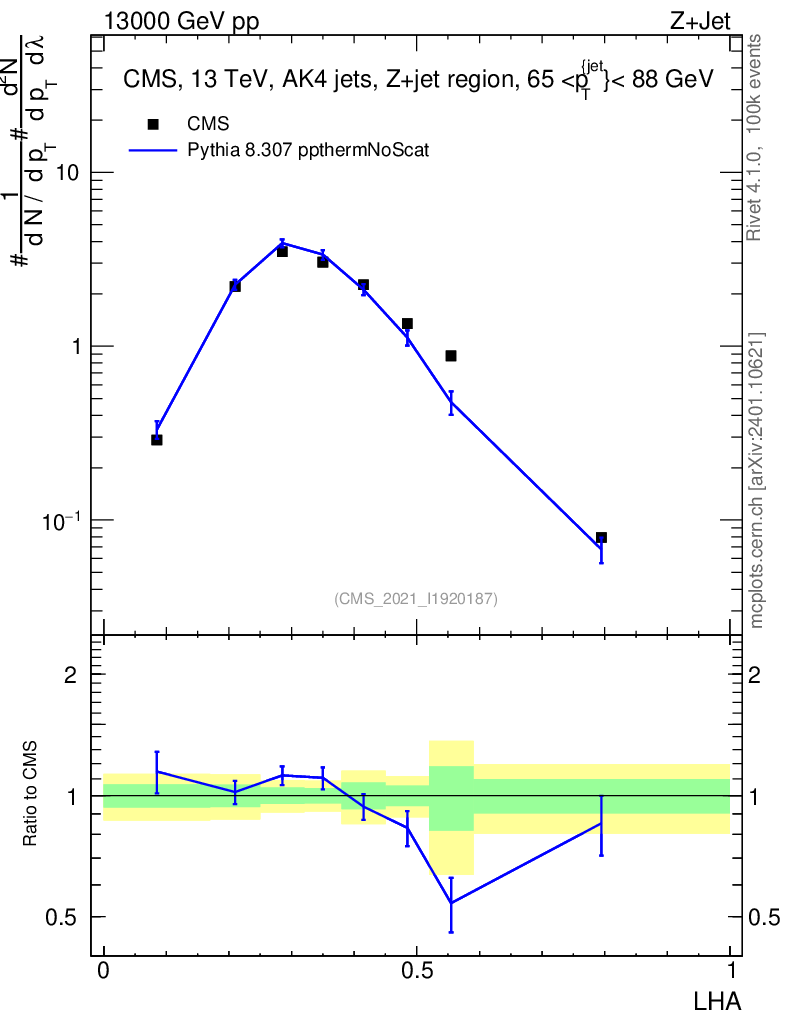 Lines: data, pythia8 8.307 ppthermNoScat |