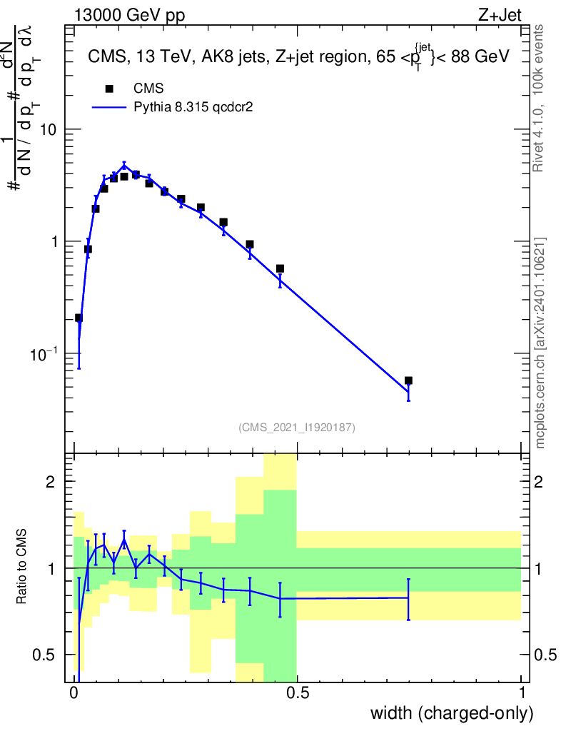 Lines: data, pythia8 8.315 qcdcr2 |