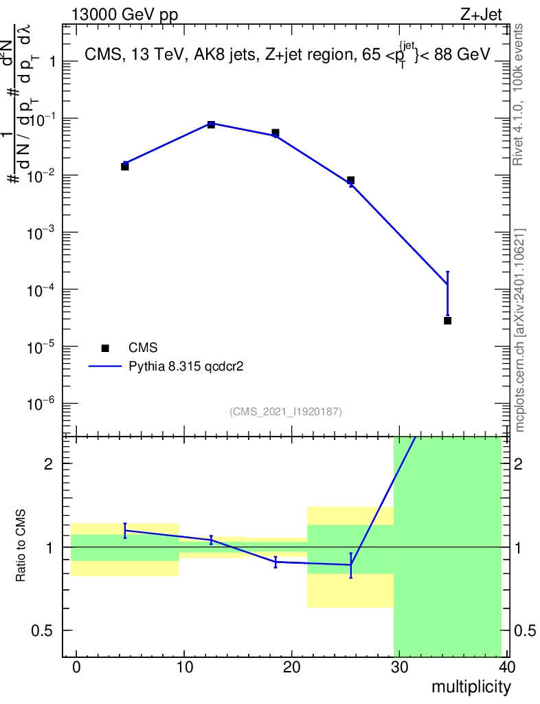 Lines: data, pythia8 8.315 qcdcr2 |