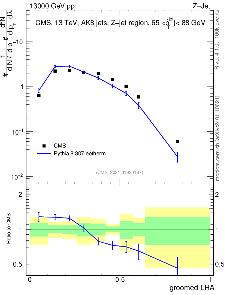 Lines: data, pythia8 8.307 eetherm |