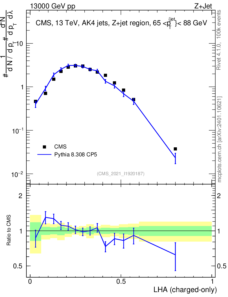 Lines: data, pythia8 8.308 CP5 |
