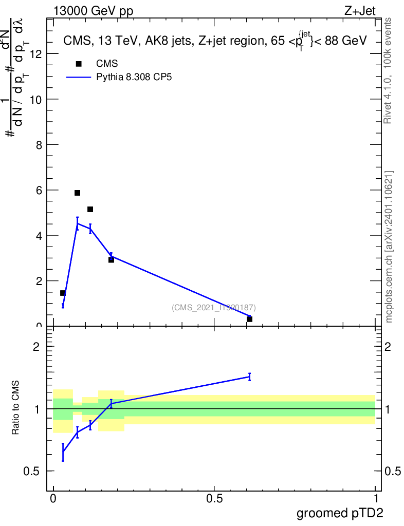 Lines: data, pythia8 8.308 CP5 |