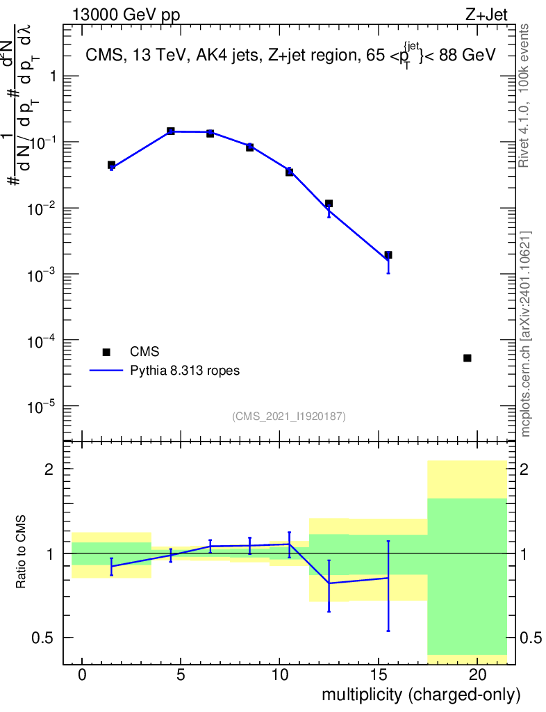 Lines: data, pythia8 8.313 ropes |