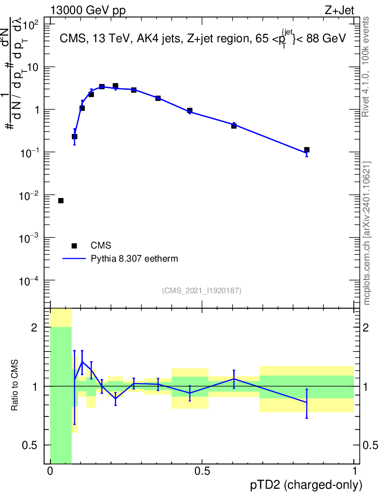 Lines: data, pythia8 8.307 eetherm |