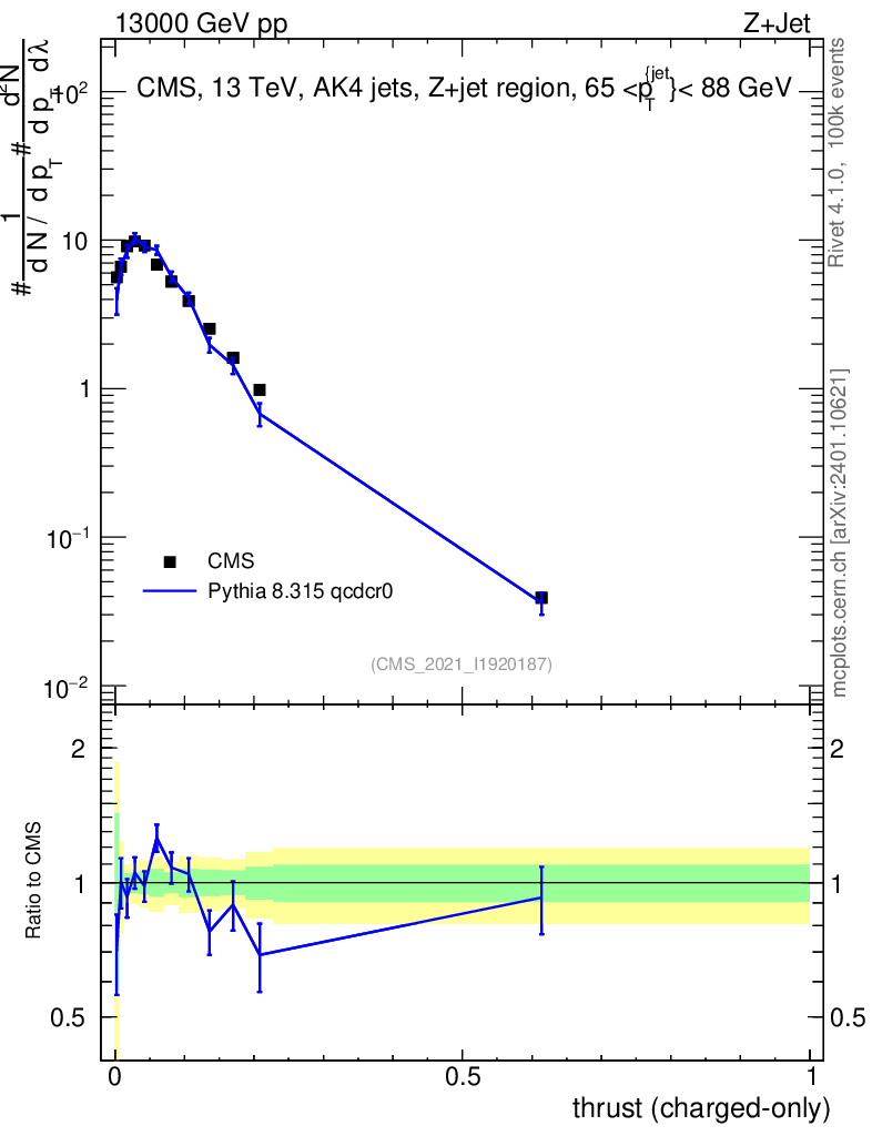 Lines: data, pythia8 8.315 qcdcr0 |