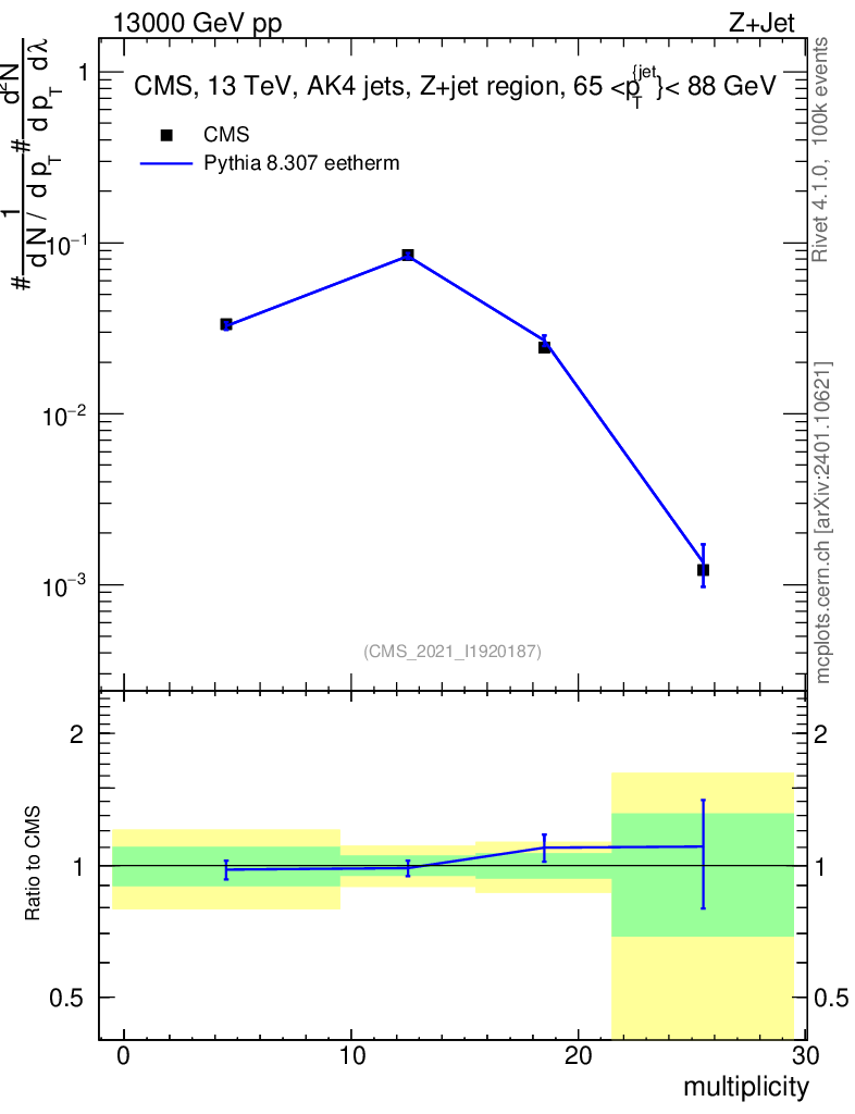 Lines: data, pythia8 8.307 eetherm |
