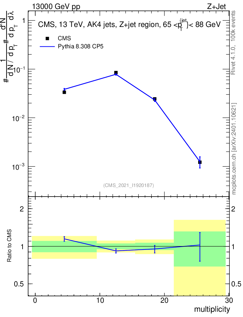 Lines: data, pythia8 8.308 CP5 |