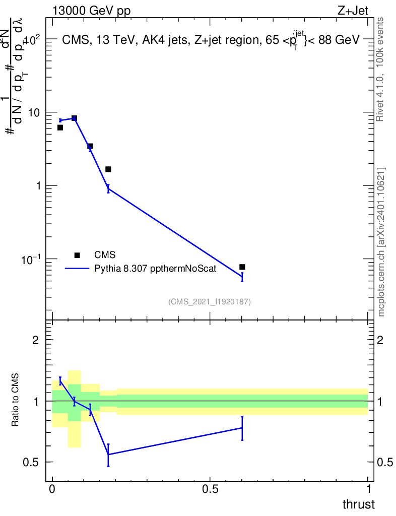 Lines: data, pythia8 8.307 ppthermNoScat |