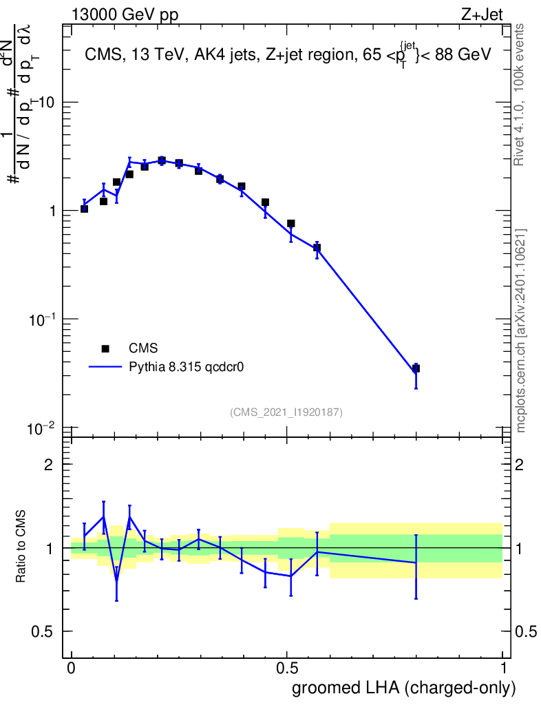 Lines: data, pythia8 8.315 qcdcr0 |