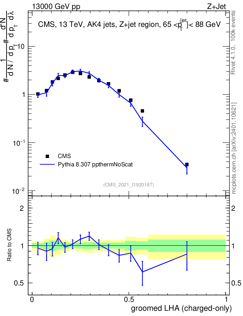Lines: data, pythia8 8.307 ppthermNoScat |