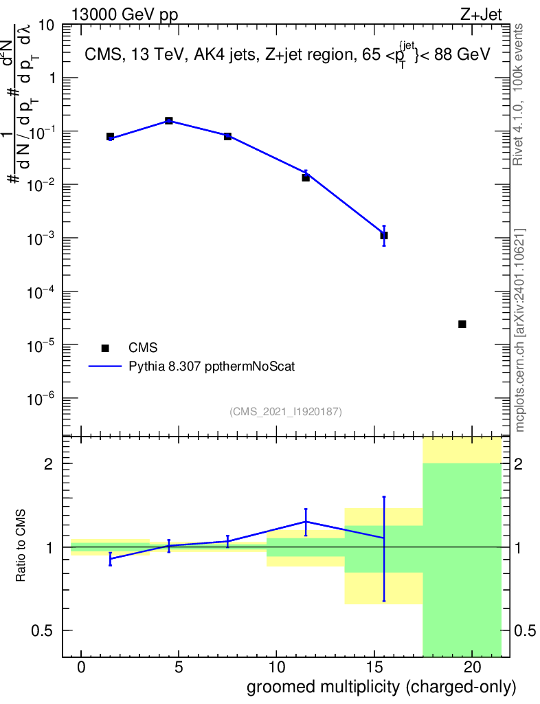 Lines: data, pythia8 8.307 ppthermNoScat |