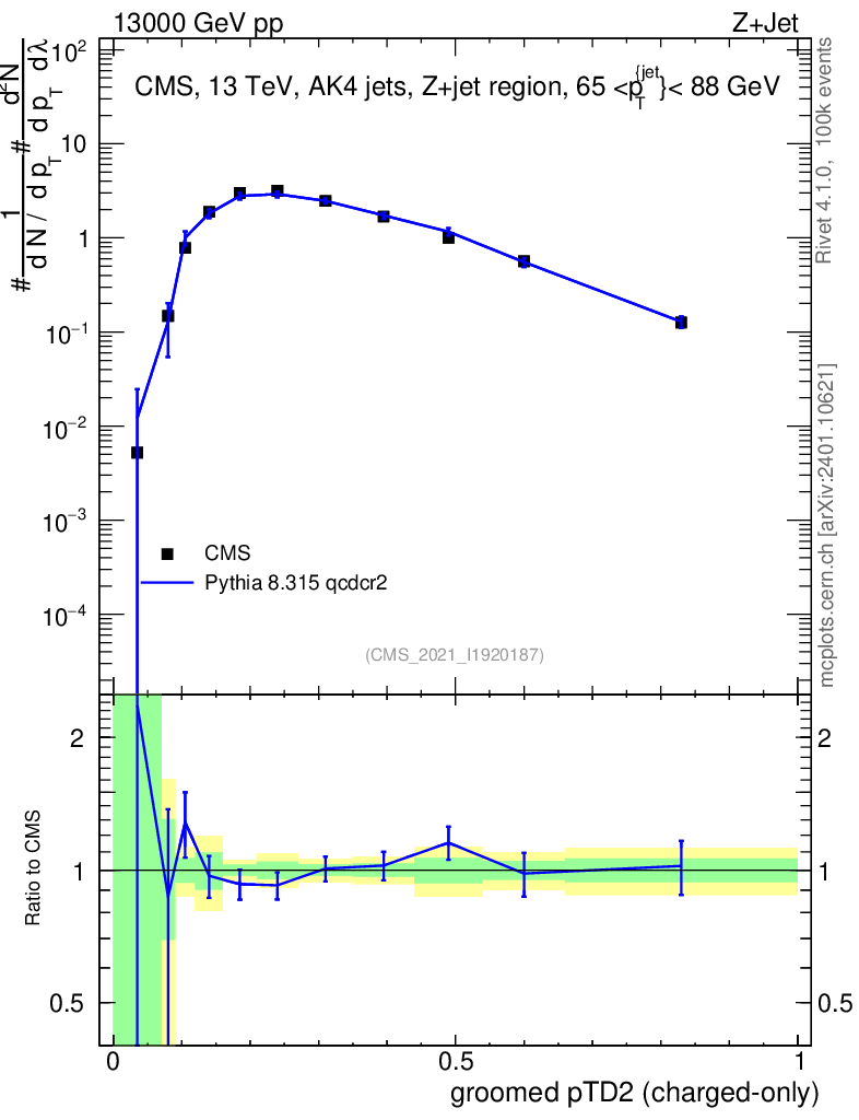Lines: data, pythia8 8.315 qcdcr2 |
