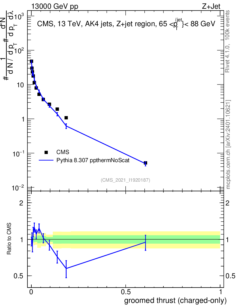 Lines: data, pythia8 8.307 ppthermNoScat |