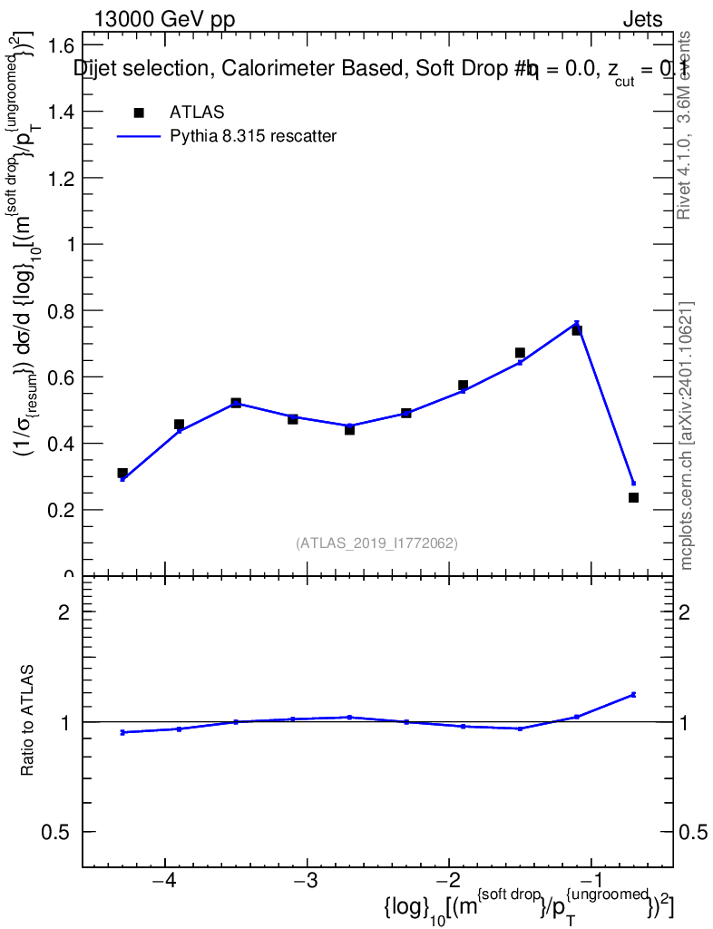 Lines: data, pythia8 8.315 rescatter |