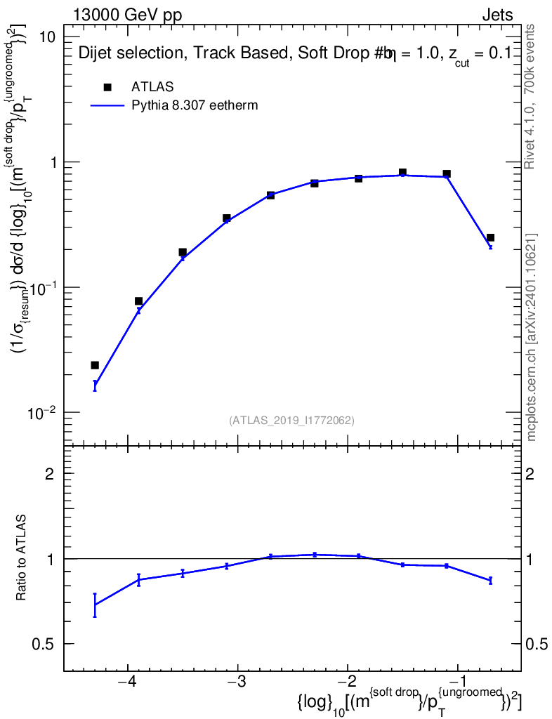 Lines: data, pythia8 8.307 eetherm |