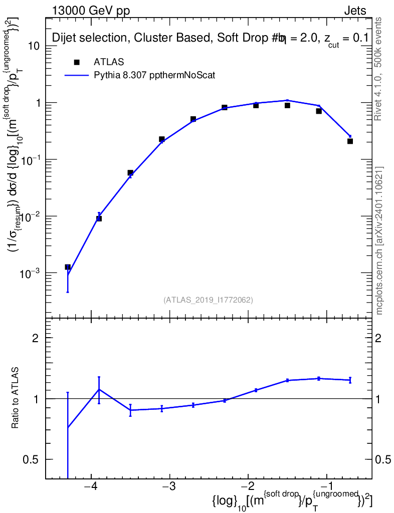 Lines: data, pythia8 8.307 ppthermNoScat |