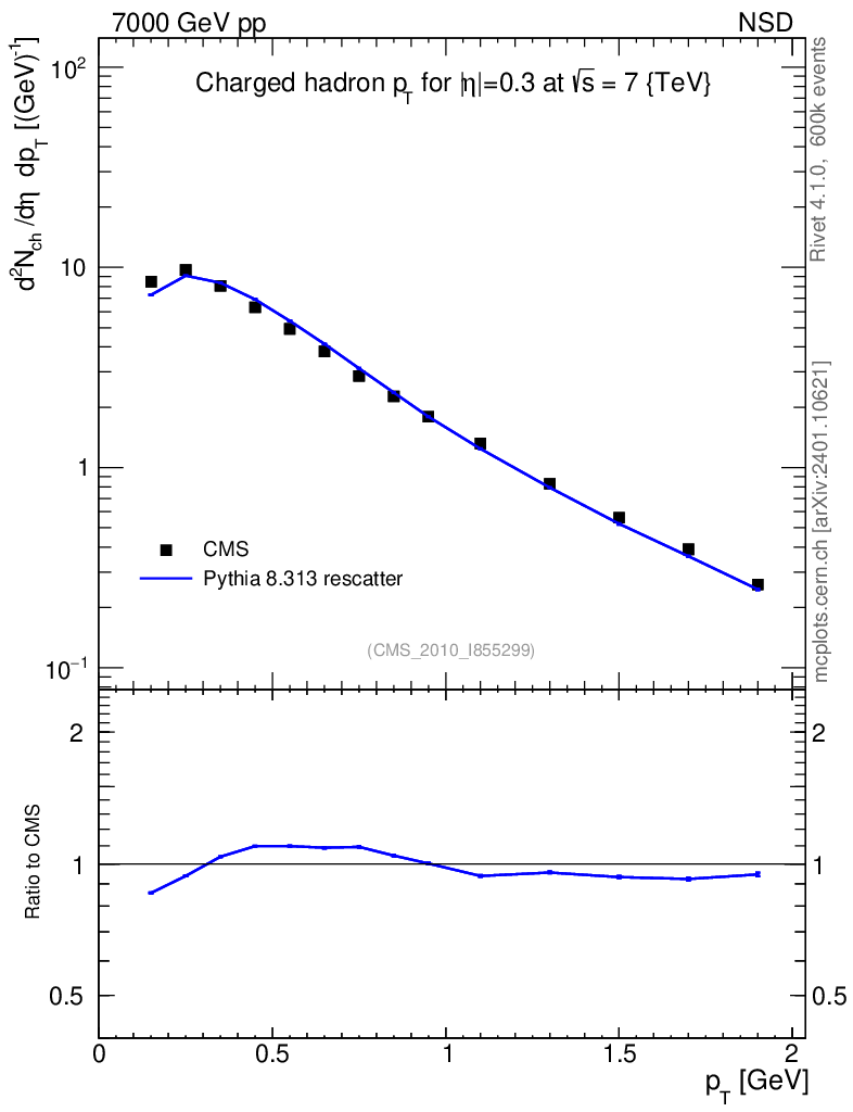 Lines: data, pythia8 8.313 rescatter |