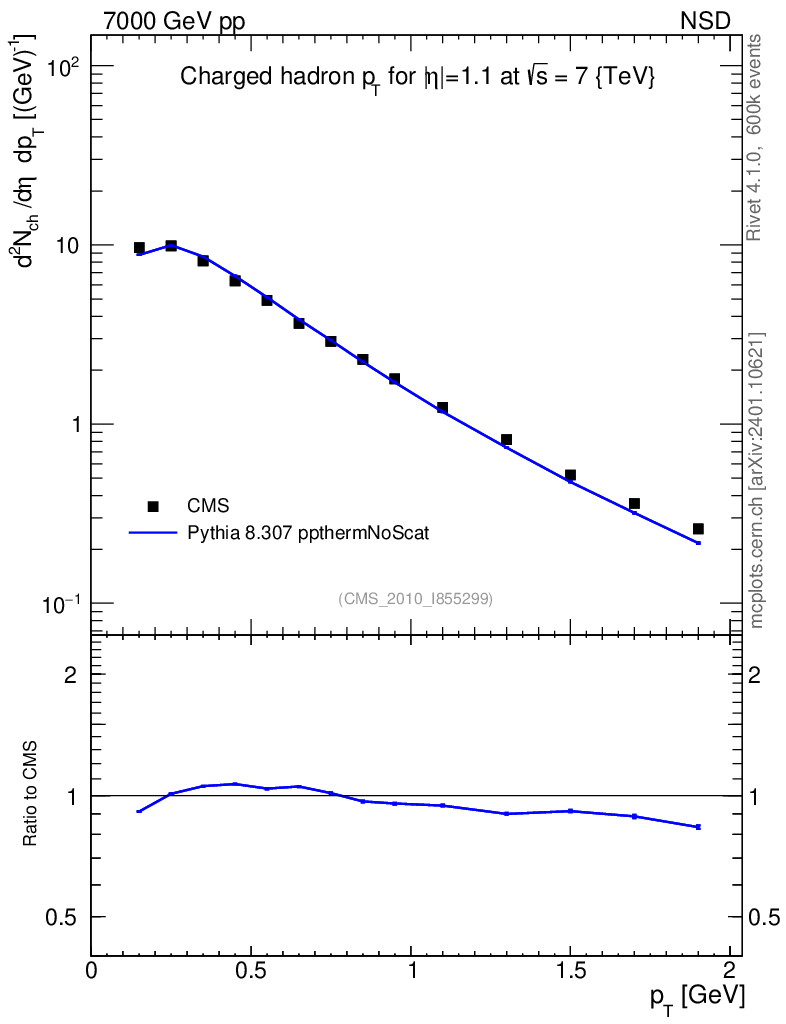Lines: data, pythia8 8.307 ppthermNoScat |
