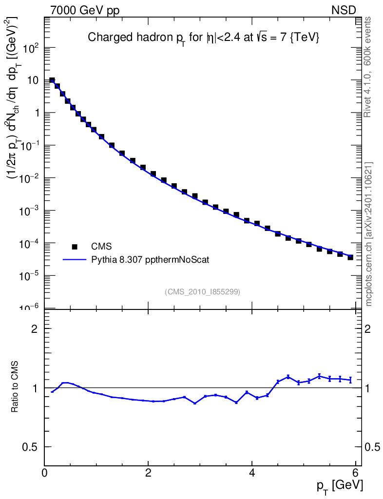 Lines: data, pythia8 8.307 ppthermNoScat |