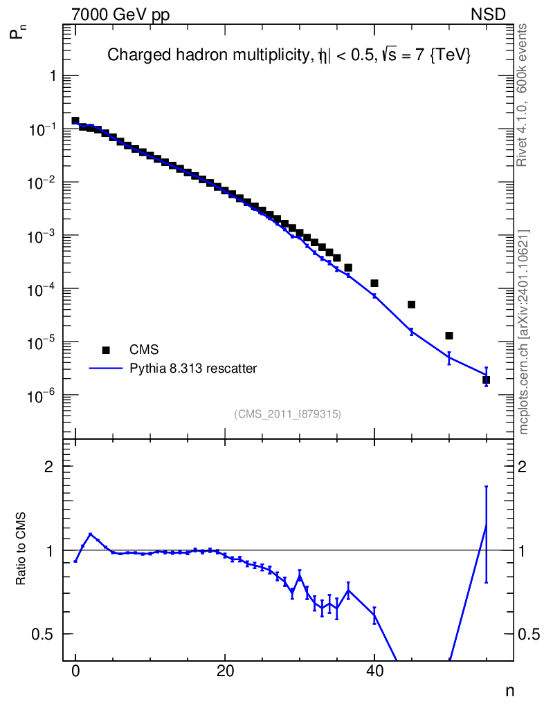 Lines: data, pythia8 8.313 rescatter | compare with other tunes
