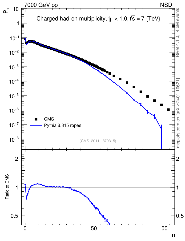 Lines: data, pythia8 8.315 ropes |