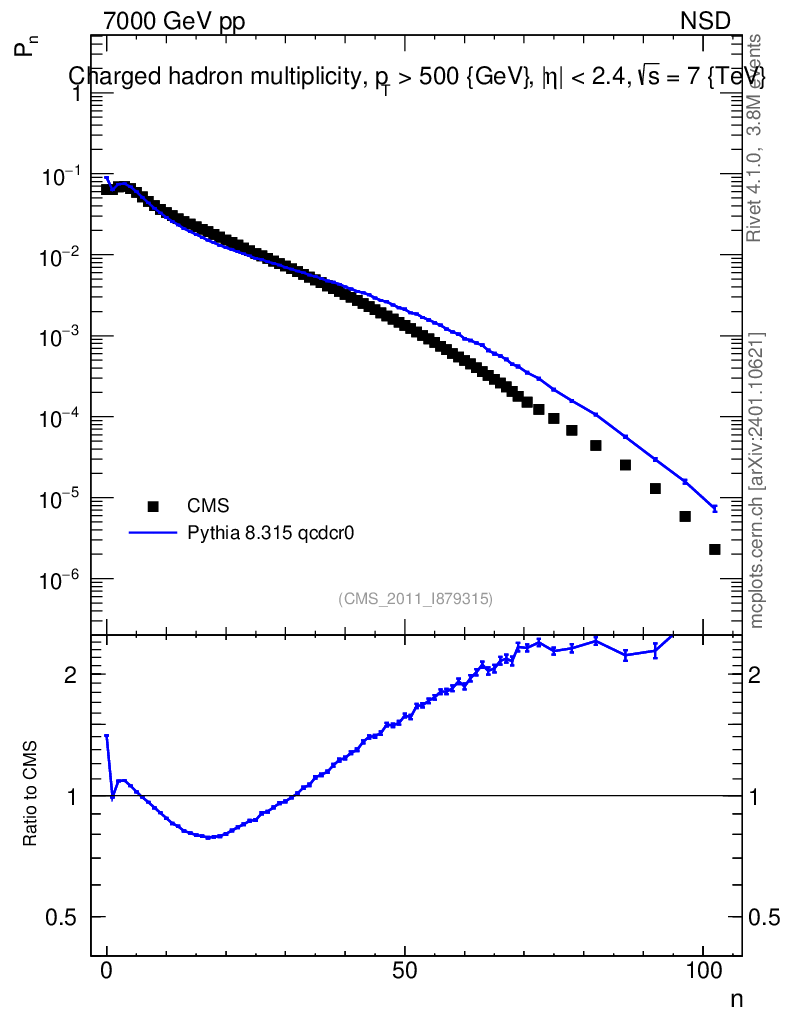Lines: data, pythia8 8.315 qcdcr0 |